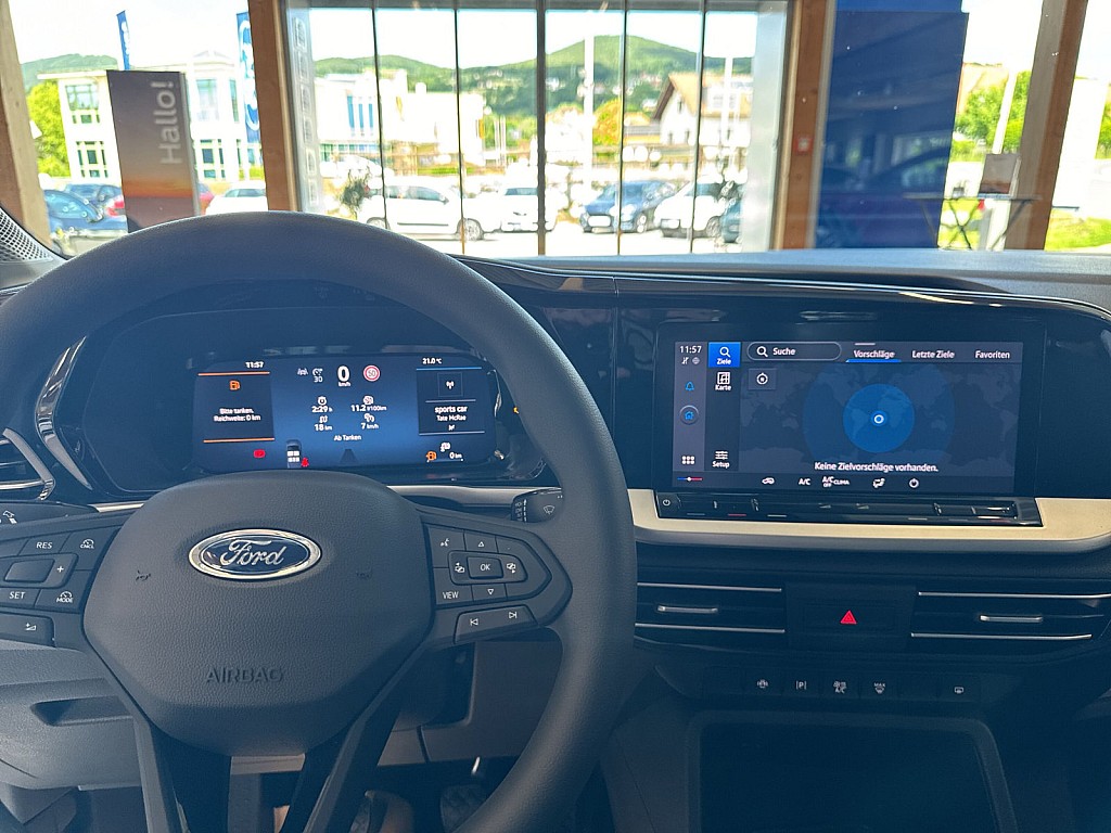 Pre-Collision-Assist inkl. Auffahrwarnsystem (FA – Forward Alert) mit Fussgänger- und Fahrraderkennung, zusätzlich mit Ausweichassistent und Gegenverkehr-Erkennung Geschwindigkeitsregelanlage mit intelligentem Geschwindigkeitsbegrenzer Verkehrsschild-Erkennungssystem Müdigkeitswarner Fahrspur-Assistent inkl. Fahrspurhalte-Assistent Park-Pilot-System vorn und hinten Berganfahrassistent 10“-Touchscreen (25,4 cm Bildschirmdiagonale) mit digitalem Radioempfang DAB/DAB+ (Digital Audio Broadcasting) und Navigationssystem 10,25“-digitale Instrumententafel integriertes Modem (FordPass Connect) inkl. eCall Notruf-Assistent Unterstützung von Android Auto und Apple CarPlay 2 USB-C Anschlüsse, vorne Sprachsteuerung für Audio und kompatible Mobiltelefone 4 Lautsprecher, 2 vorne und 2 hinten Funkfernbedienung